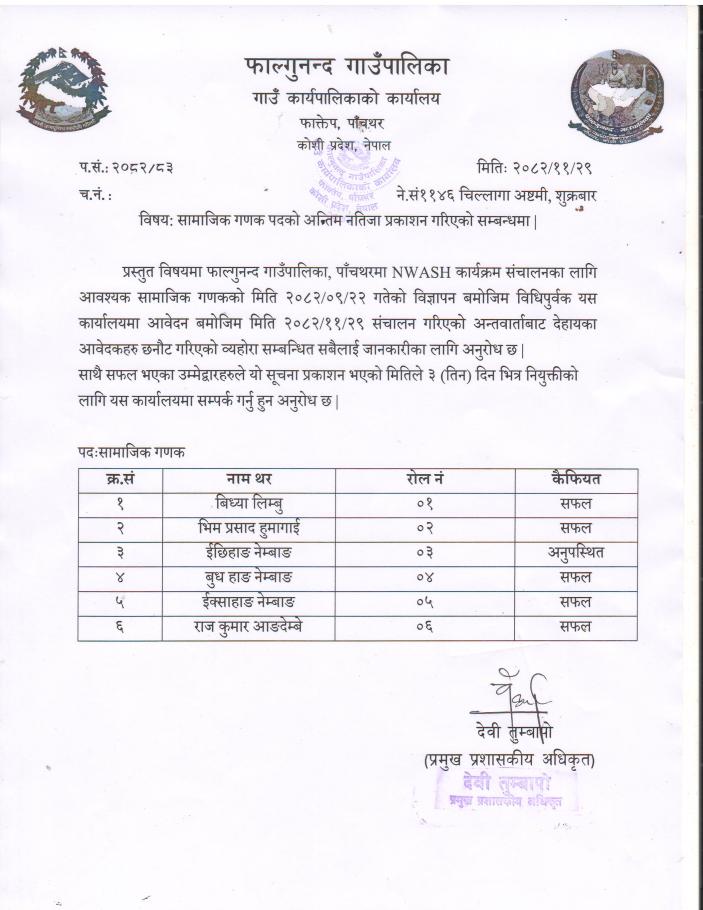 NWASH कार्यक्रम सम्बन्धि सामाजिक र प्राविधिक गणकको नतिजा प्रकाशन सम्बन्धमा |