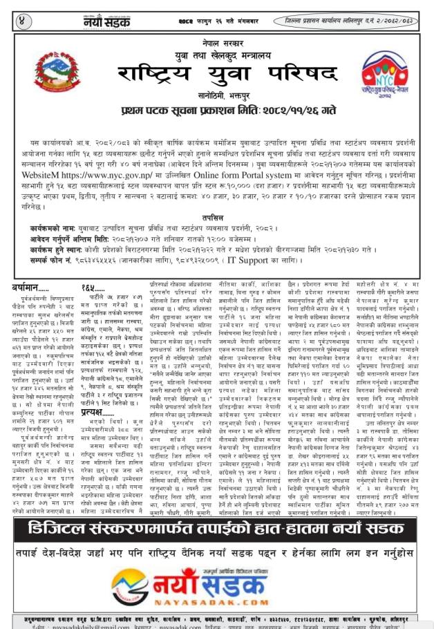 युवाबाट उत्पादित सूचना प्रविधि तथा स्टार्टअप व्यवशाय प्रदर्शनी सम्बन्धि सूचना