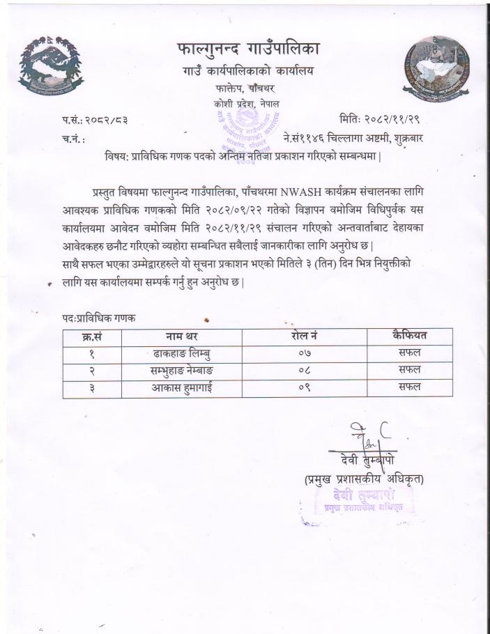 NWASH कार्यक्रम सम्बन्धि सामाजिक र प्राविधिक गणकको नतिजा प्रकाशन सम्बन्धमा |